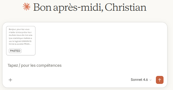 Générons le rapport complet avec Interprétation par IA Claude. Le rapport est automatiquement copié dans le presse-papiers et l’IA Claude chargée. L’interprétation et les conseils de l’IA Claude sont alors disponibles en quelques instants.
