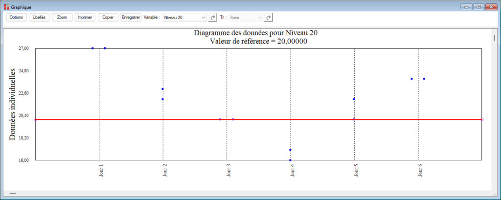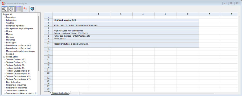 Le fichier des résultats est disponible dans les formats STATGRAPHICS Centurion (sf6) et EXCEL (html). Cela vous permet d’utiliser les résultats de l’analyse inter-laboratoires dans toute autre procédure.