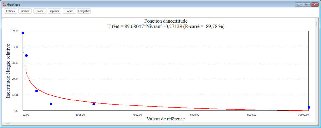 Limite de quantification (LQ) Graphique de la fonction d’incertitude